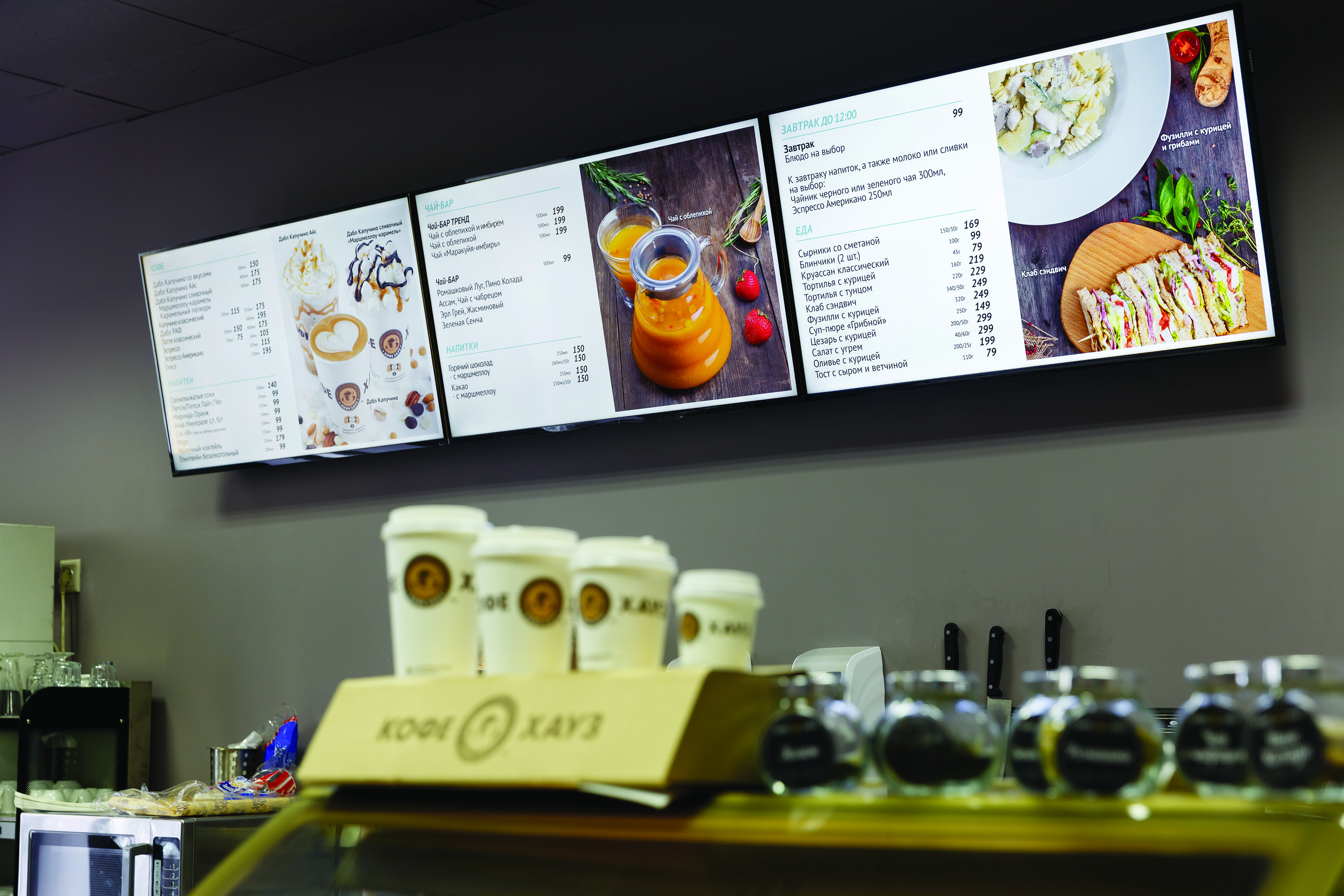 В ресторанном бизнесе Digital Signage находит широкое применение, начиная от меню-бордов и заканчивая интерактивными киосками для самообслуживания.